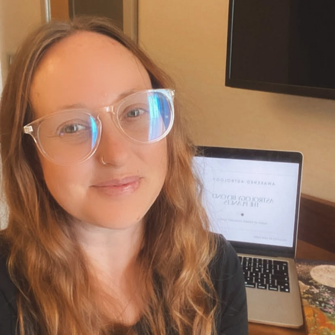 Hello, I’m Katie! I’m your Astrologer here to help you ground big cosmic energies as you move through the “messy middle” of learning astrology.